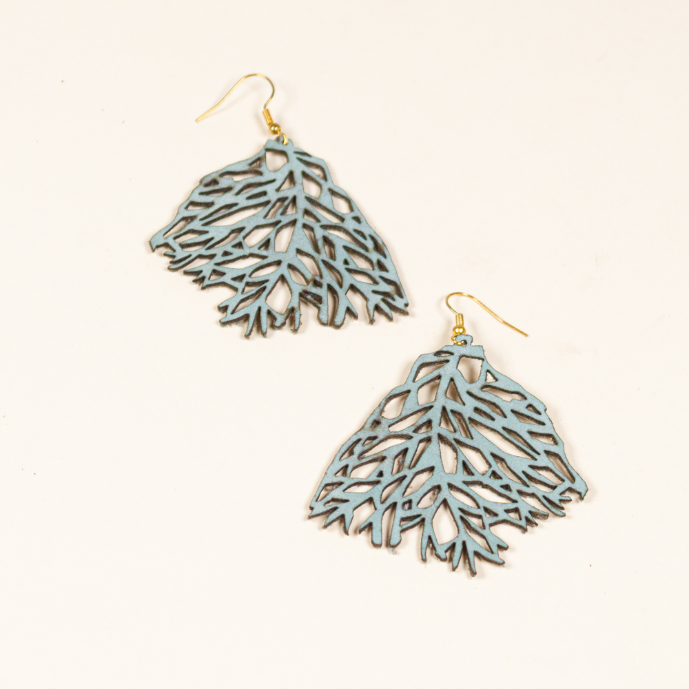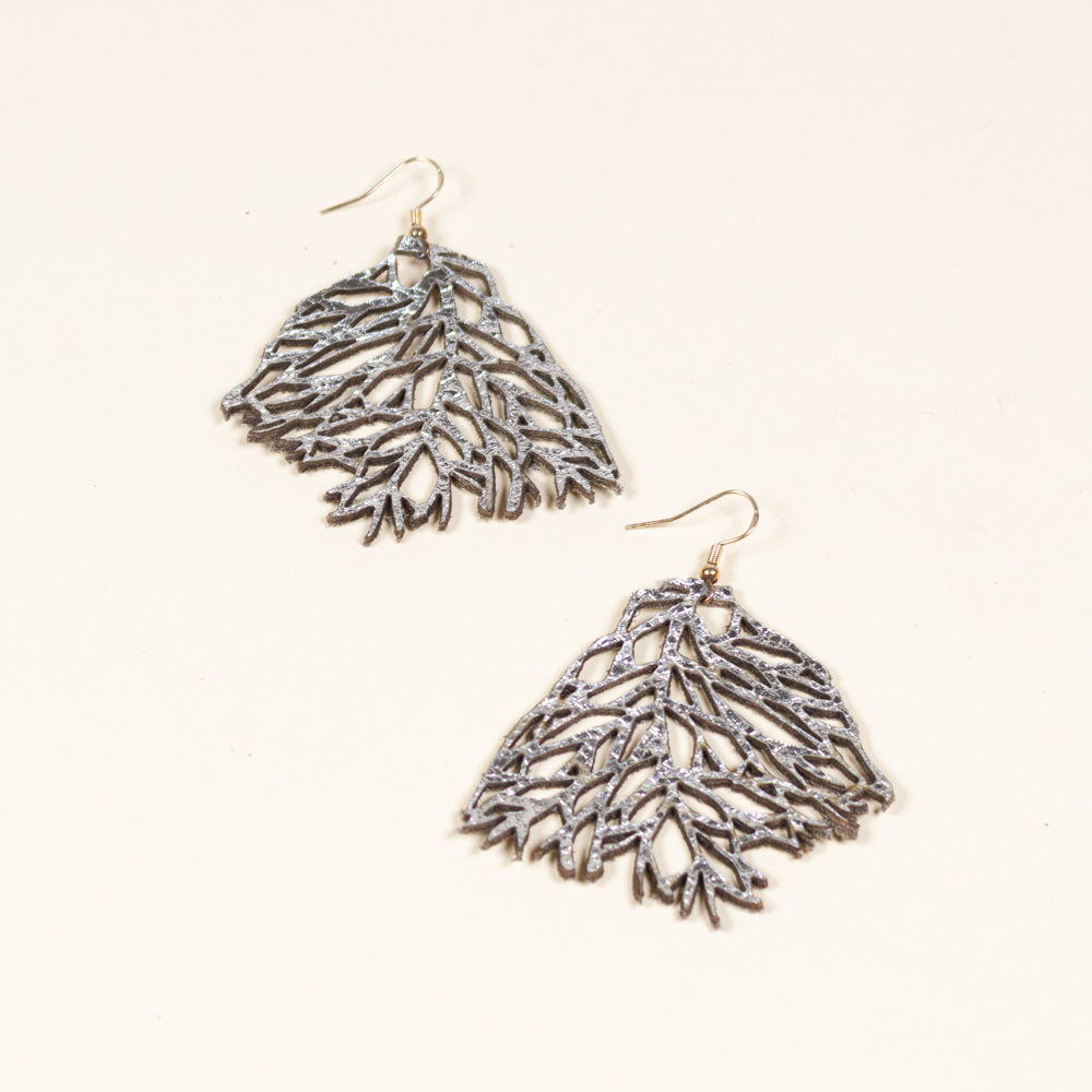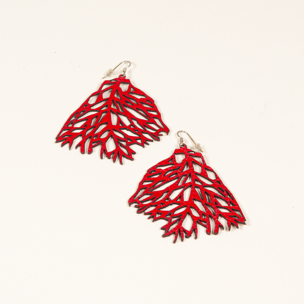 This striking leather earrings is crafted from laser-cut full-grain leather, eco-tanned to ensure lasting color and flexibility. Inspired by nature motifs, its organic shape brings a bold yet lightweight statement to any outfit. Finished with a silver hook, it’s designed for both durability and elegance — ideal for sensitive skin and everyday wear. A unique accessory that blends nature, craftsmanship, and contemporary design.