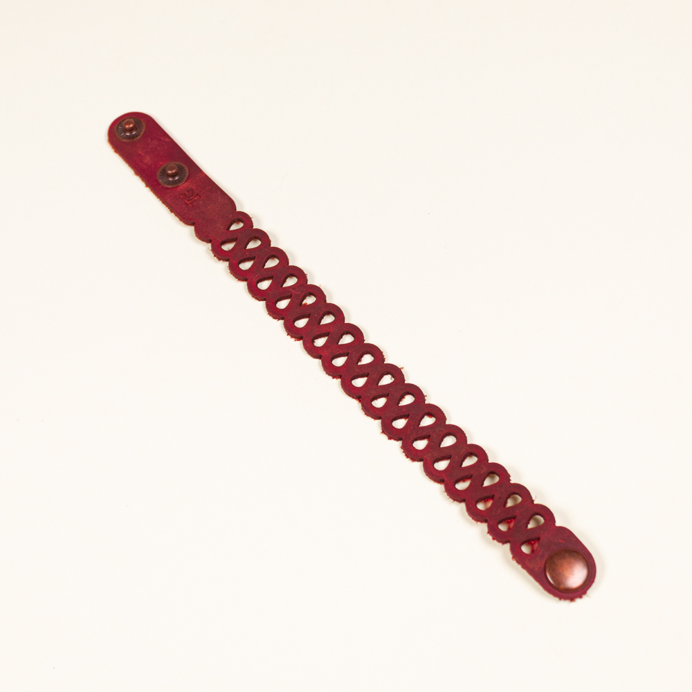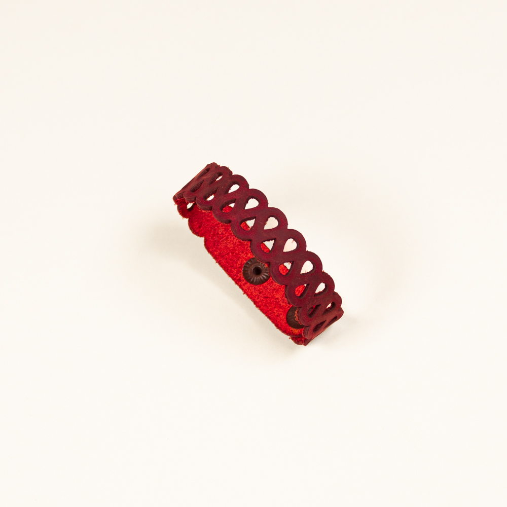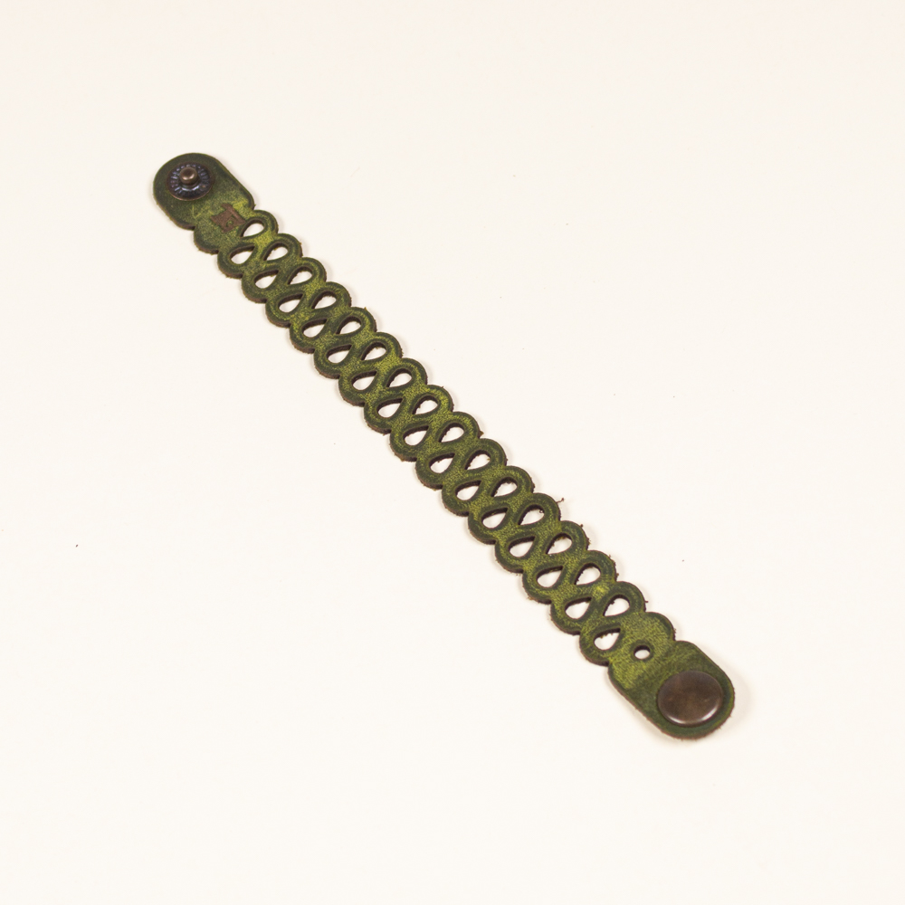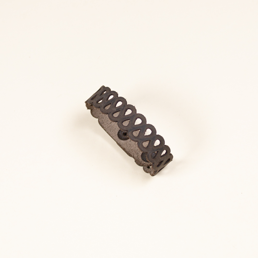 This striking leather bracelet is crafted from laser-cut full-grain leather, eco-tanned to ensure lasting color and flexibility. Inspired by nature motifs, its organic shape brings a bold yet lightweight statement to any outfit. Finished with a brass bottoms, it’s designed for both durability and elegance — ideal for sensitive skin and everyday wear. A unique accessory that blends nature, craftsmanship, and contemporary design.