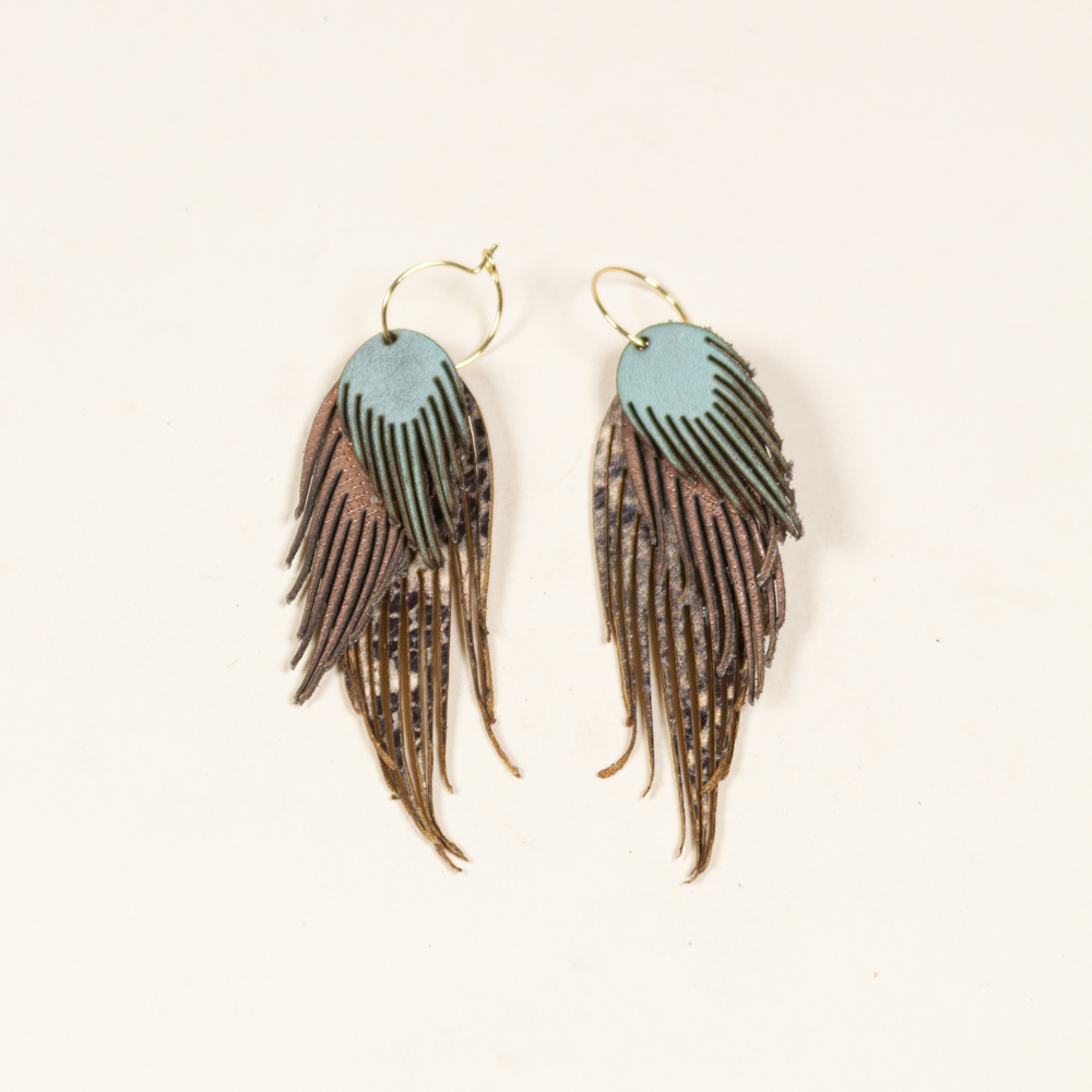 This striking leather earrings is crafted from laser-cut full-grain leather, eco-tanned to ensure lasting color and flexibility. Inspired by nature motifs, its organic shape brings a bold yet lightweight statement to any outfit. Finished with a stainless still hook, it’s designed for both durability and elegance — ideal for sensitive skin and everyday wear. A unique accessory that blends nature, craftsmanship, and contemporary design.