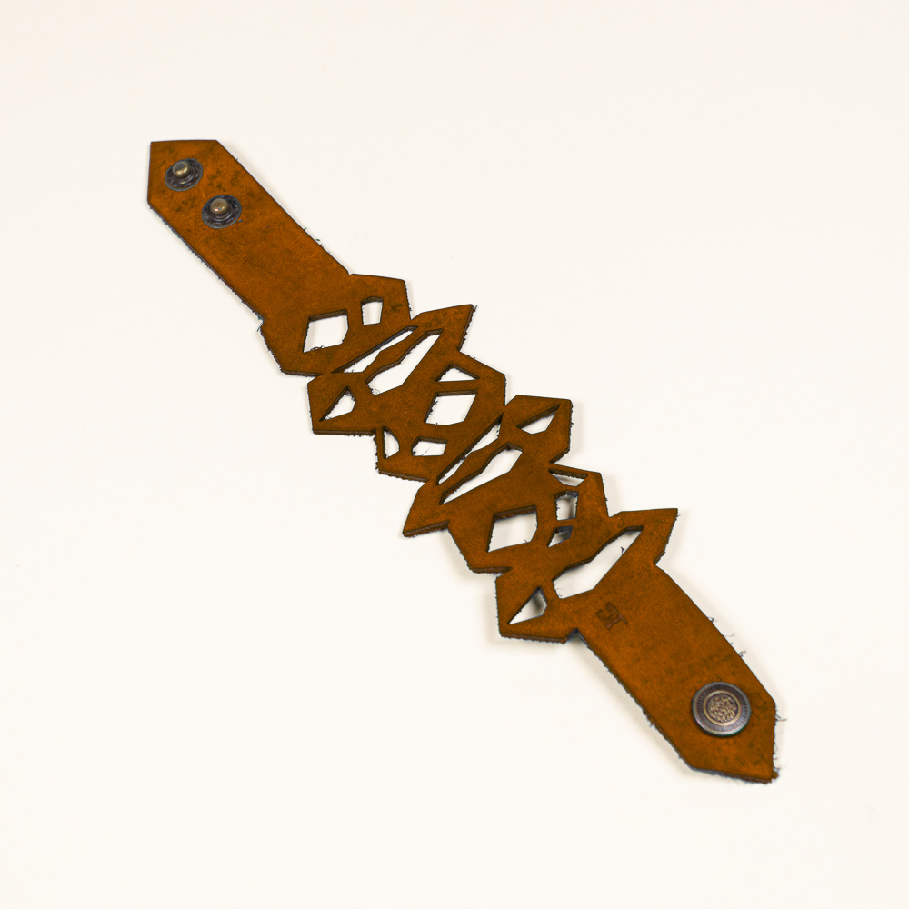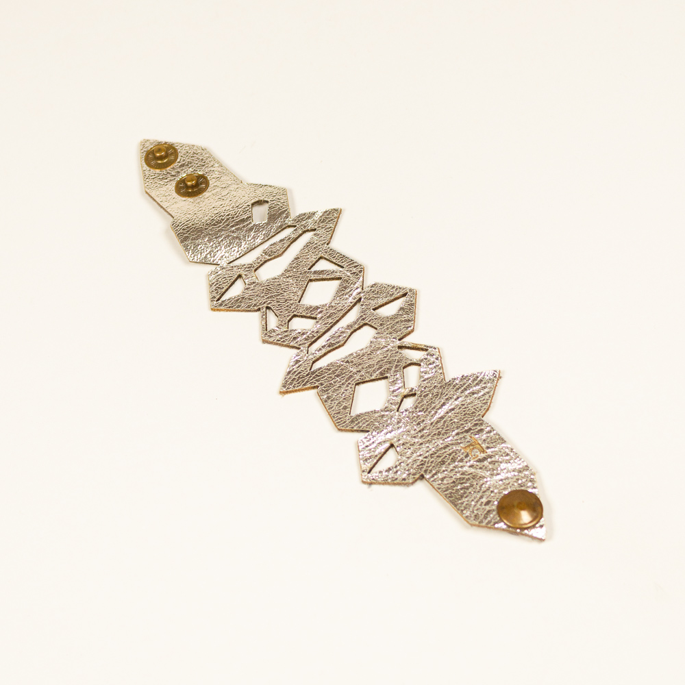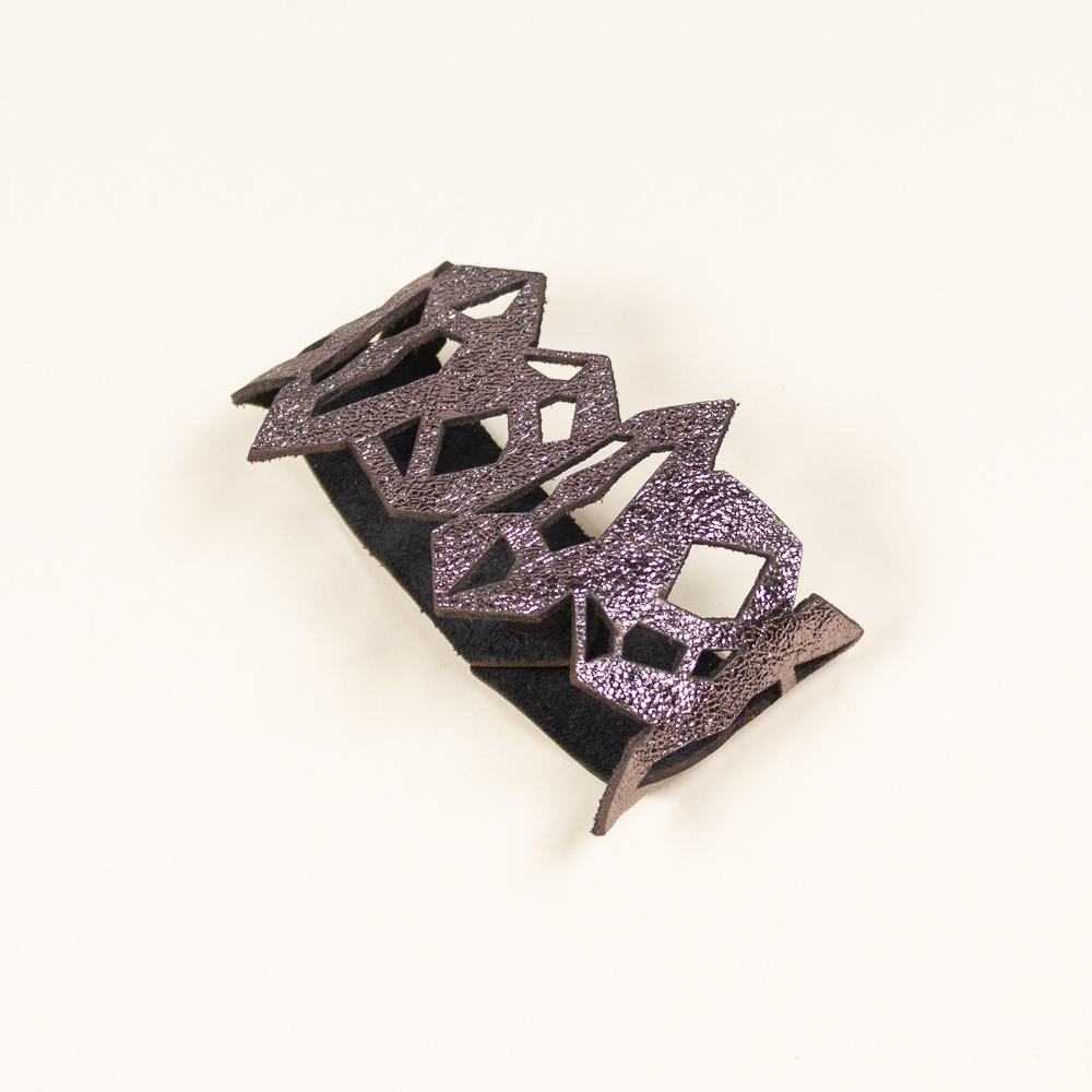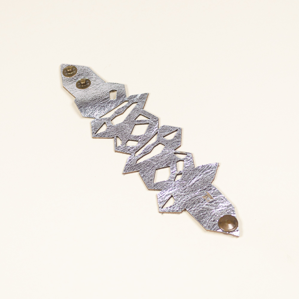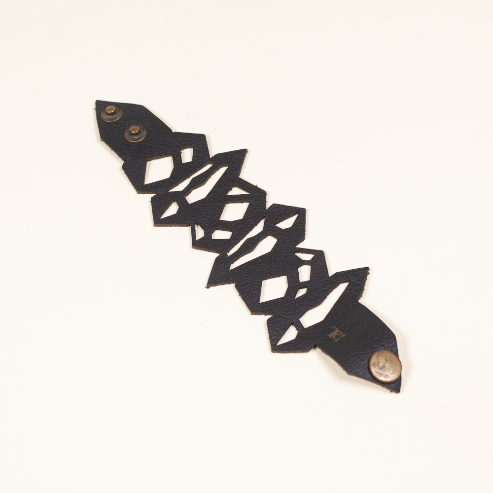 This striking leather bracelet is crafted from laser-cut full-grain leather, eco-tanned to ensure lasting color and flexibility. Inspired by Quartz Pattern, its organic shape brings a bold yet lightweight statement to any outfit. Finished with a surgical-grade stainless steel chain and a secure carabiner clasp, it’s designed for both durability and elegance — ideal for sensitive skin and everyday wear. A unique accessory that blends nature, craftsmanship, and contemporary design.