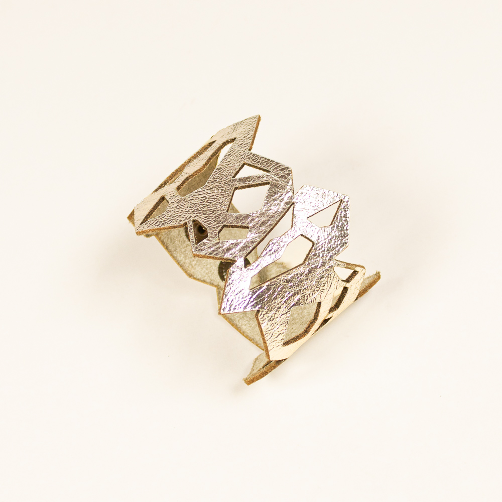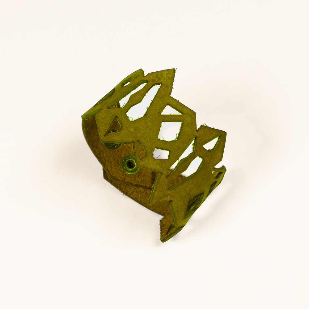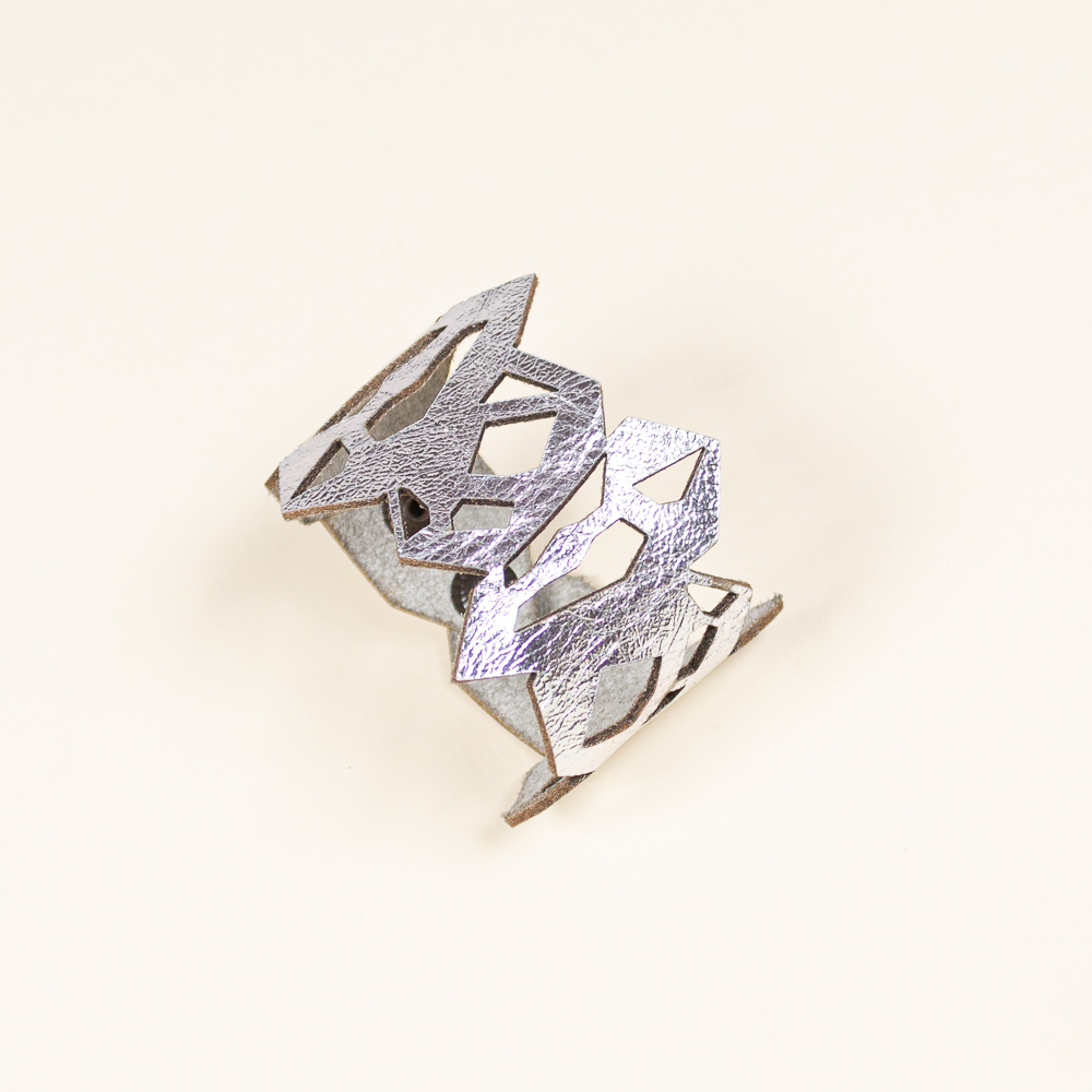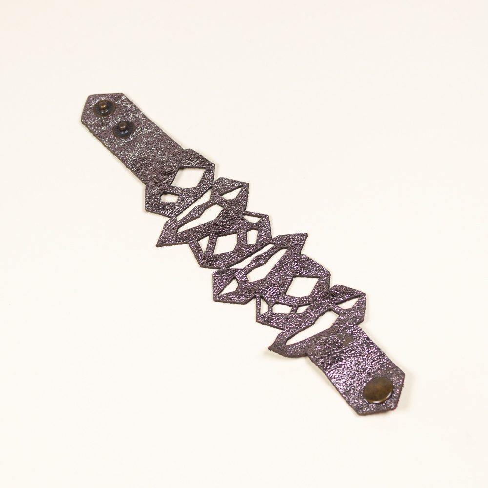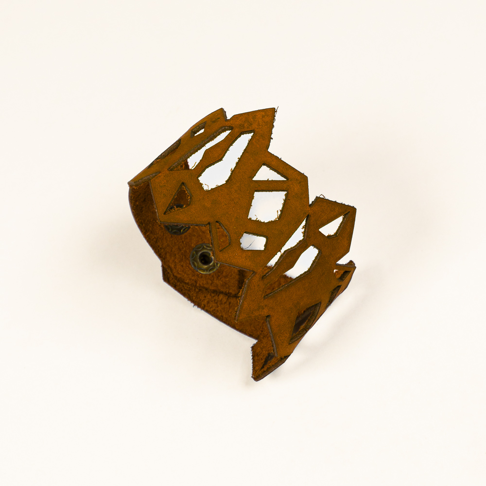 This striking leather bracelet is crafted from laser-cut full-grain leather, eco-tanned to ensure lasting color and flexibility. Inspired by Quartz Pattern, its organic shape brings a bold yet lightweight statement to any outfit. Finished with a surgical-grade stainless steel chain and a secure carabiner clasp, it’s designed for both durability and elegance — ideal for sensitive skin and everyday wear. A unique accessory that blends nature, craftsmanship, and contemporary design.