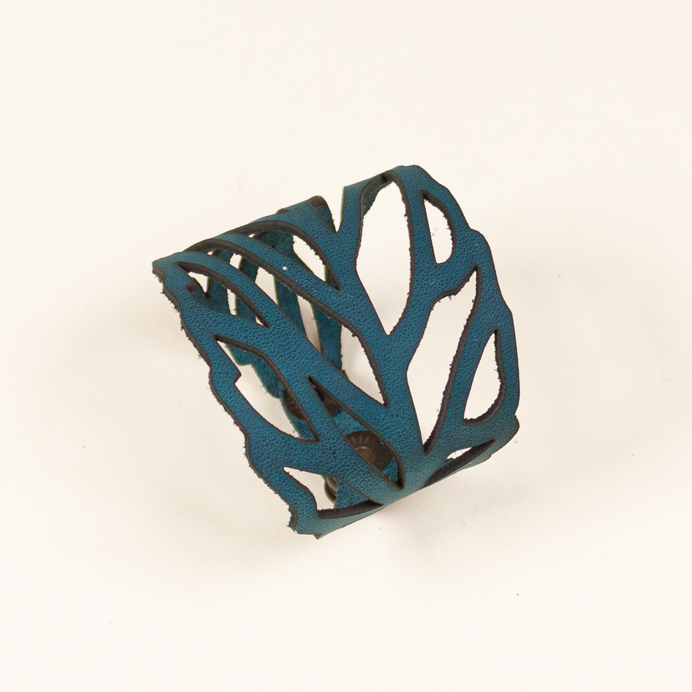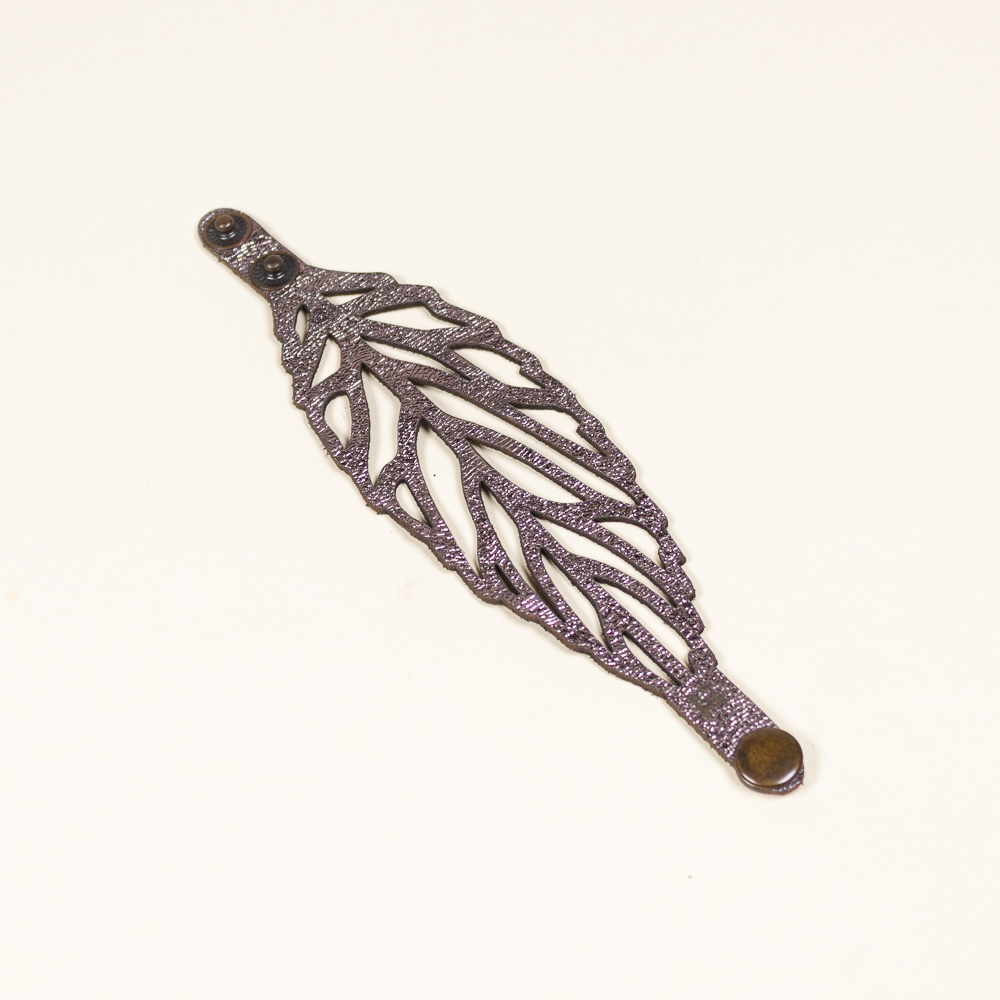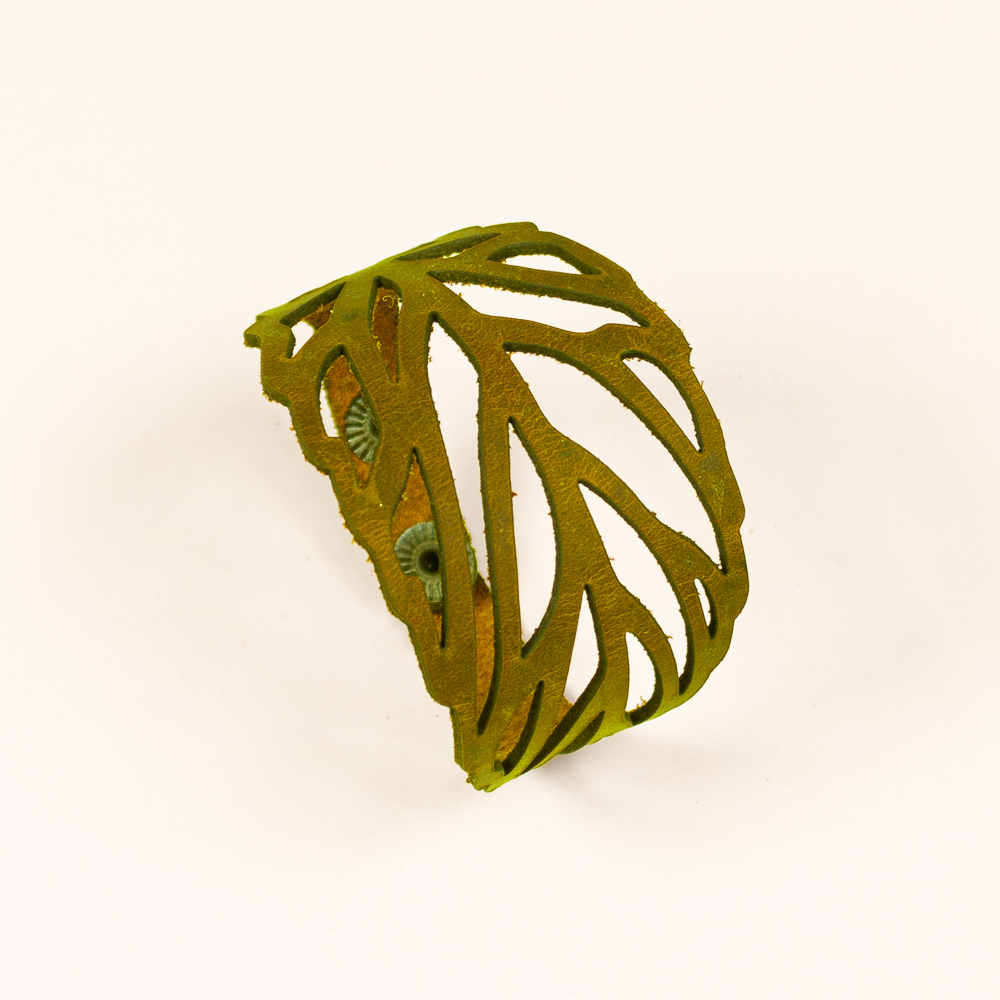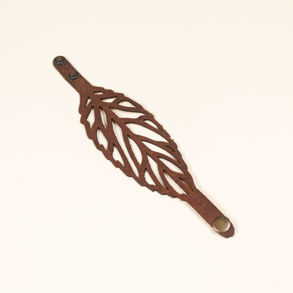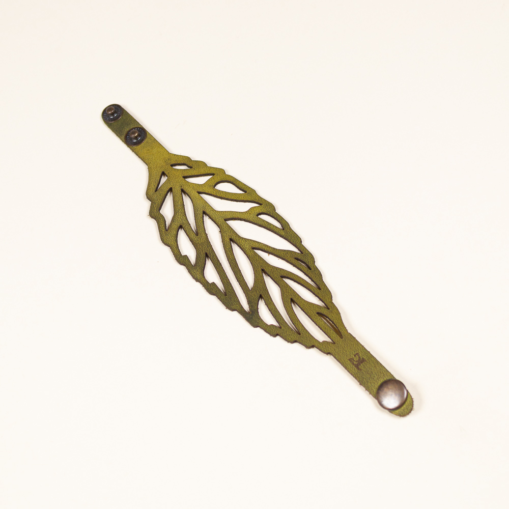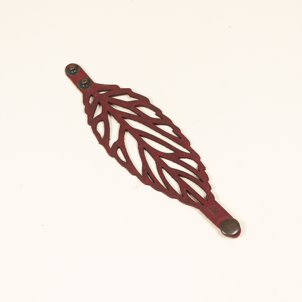 This striking leather bracelet is crafted from laser-cut full-grain leather, eco-tanned to ensure lasting color and flexibility. Inspired by nature motifs, its organic shape brings a bold yet lightweight statement to any outfit. Finished with a surgical-grade stainless steel chain and a secure carabiner clasp, it’s designed for both durability and elegance — ideal for sensitive skin and everyday wear. A unique accessory that blends nature, craftsmanship, and contemporary design.