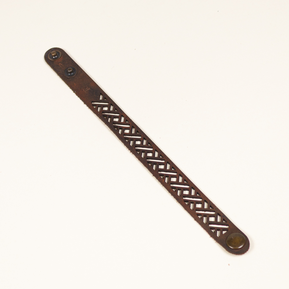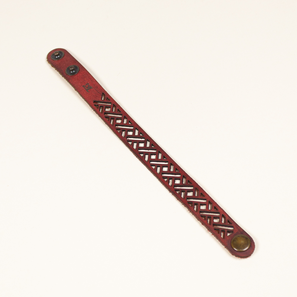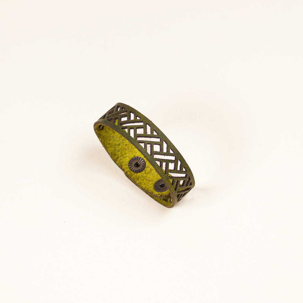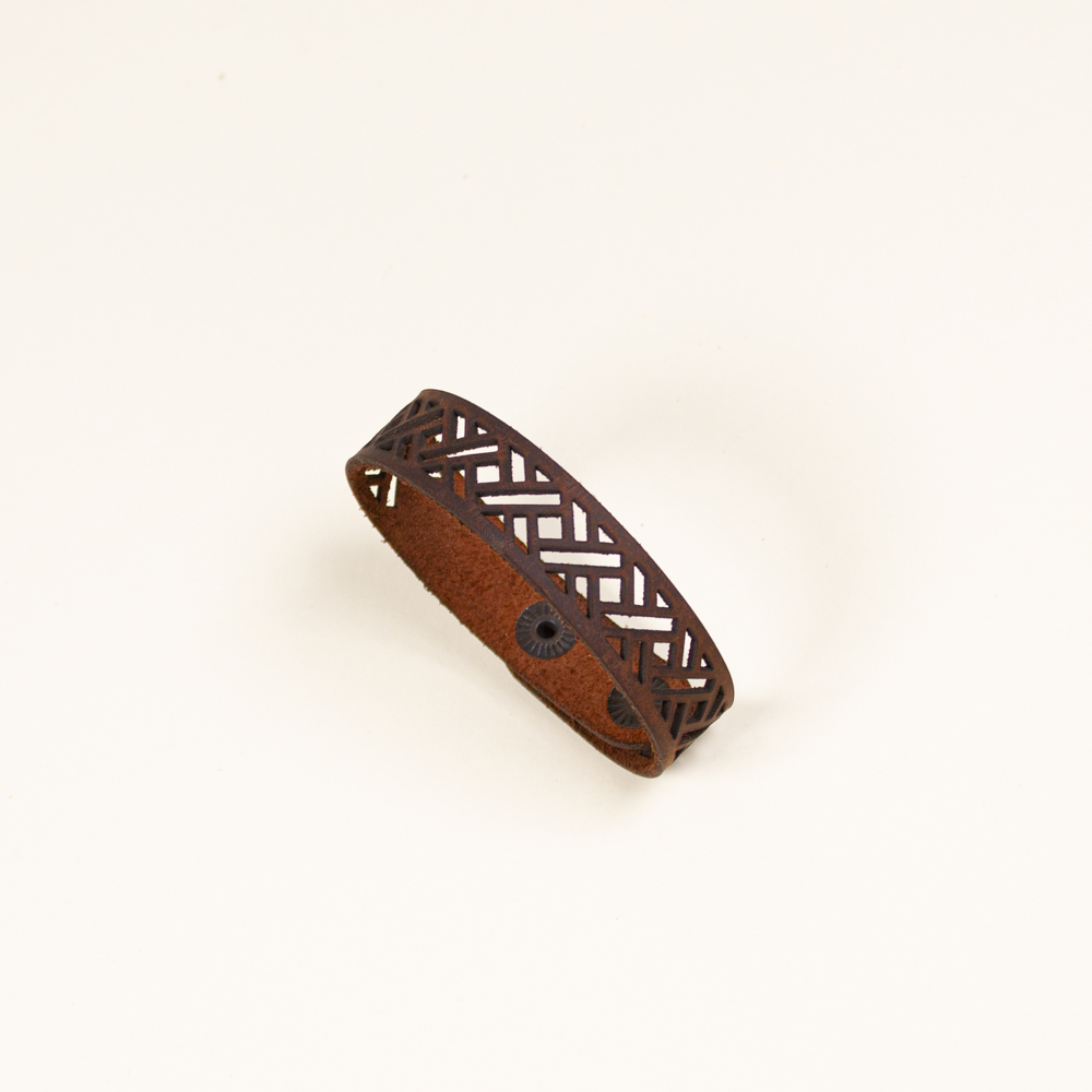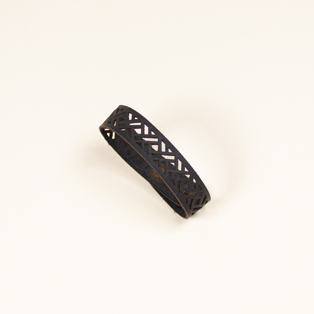 This striking leather bracelet is crafted from laser-cut full-grain leather, eco-tanned to ensure lasting color and flexibility. Inspired by nature motifs, its organic shape brings a bold yet lightweight statement to any outfit. Finished with a brass bottoms, it’s designed for both durability and elegance — ideal for sensitive skin and everyday wear. A unique accessory that blends nature, craftsmanship, and contemporary design.